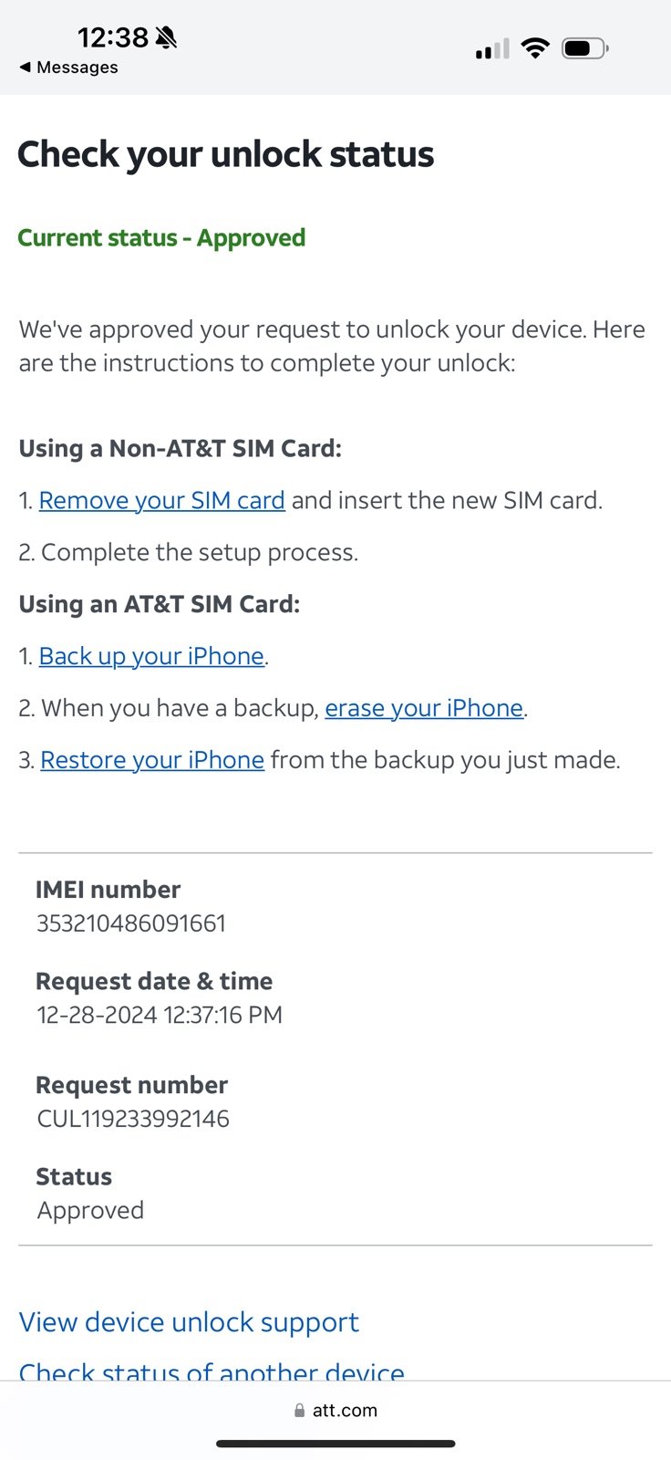CLEAN IMEI, signed out of cloud and restored to factory. Paid to have it checked to verify the imei was clean, the phone was unlocked and that there is no iCloud lock. Unlocked by AT&T on 12/28/24.