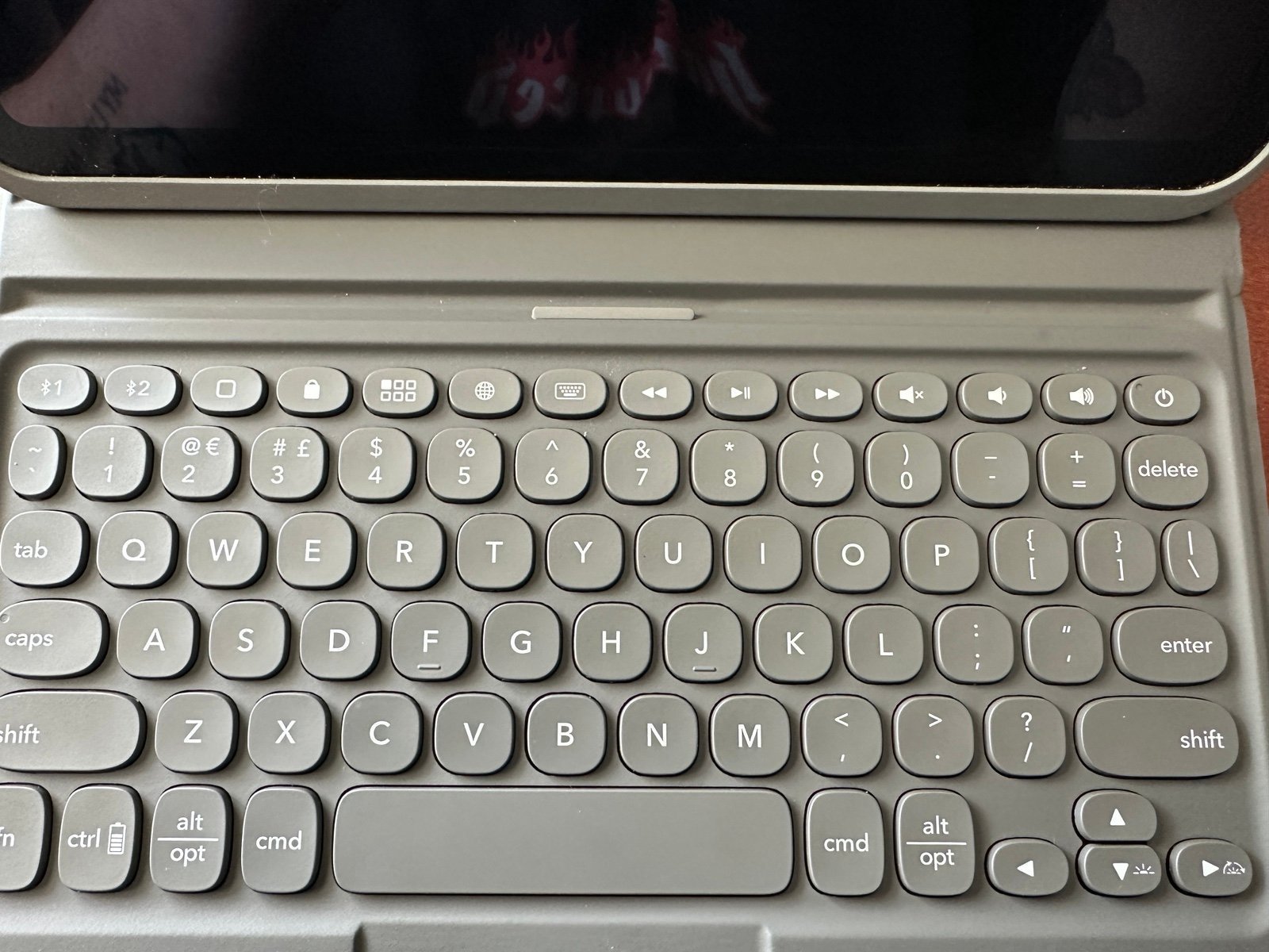 Has lived in ZAGG case since purchase. Little to no use. It sat on his shelf and he showed no interest in it (my son). He lost the power cables to both the folio and the iPad I have included 1 usb-C to usb-3.0 cable by Jsaux (only 3rd party cables I’ll buy for everything) and a brick that appears to be Apple but I’m not sure. Charged when plugged in both iPad and folio (not at same time) folio is also USB-C. So same plug will work on both.