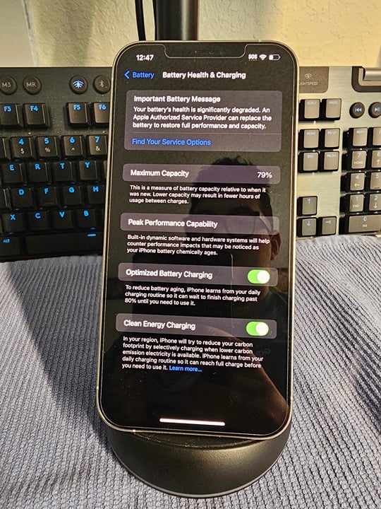 - Battery Health 79% (see pics)