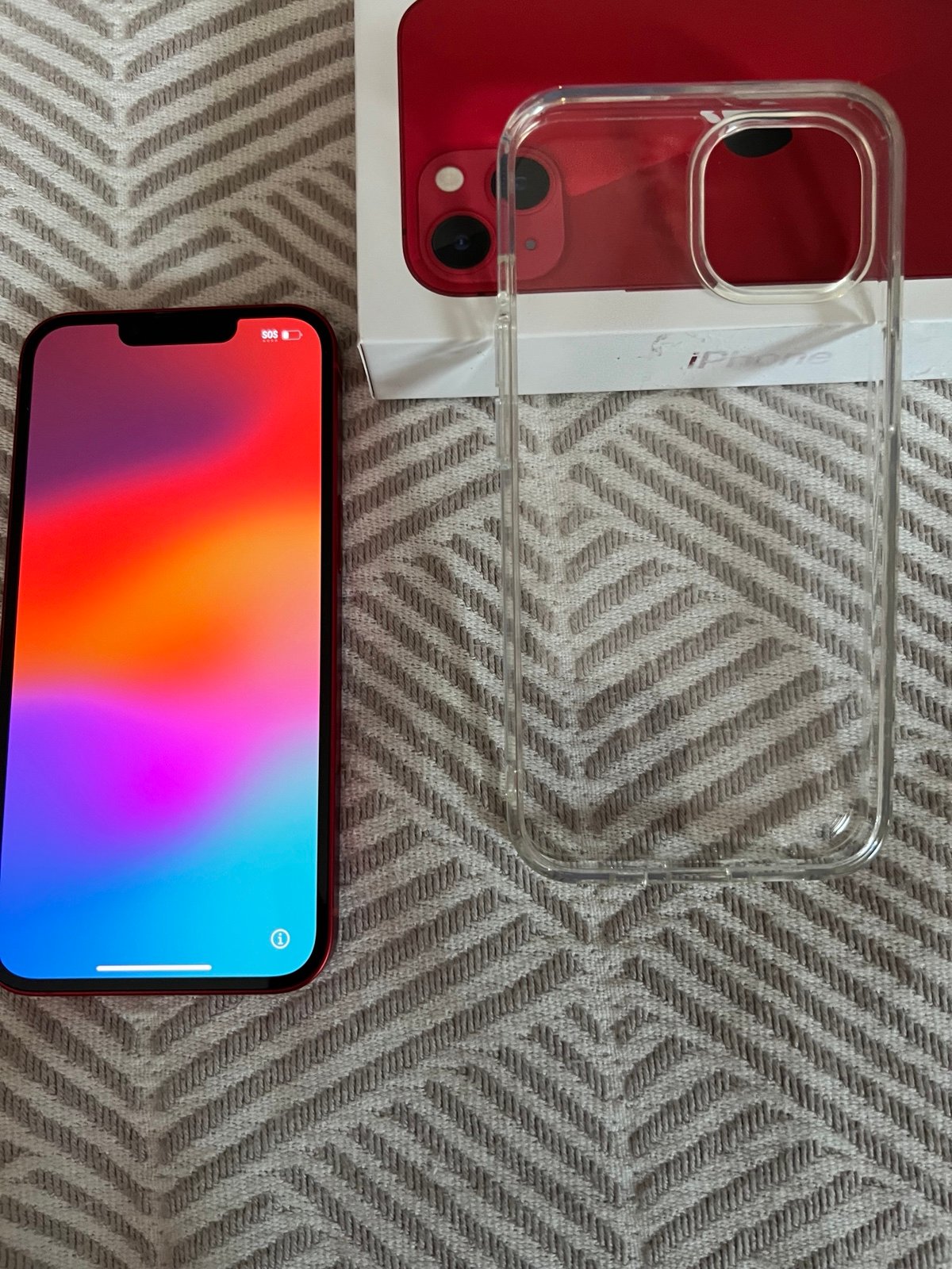 Apple iPhone 13 Product (RED) 128 GB UNLOCKED! SIM FREE. Works with ANY Carrier. This iPhone is in Excellent condition. Comes with box, cable, headphones and clear case.